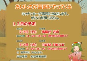*今回のキッチンカーの出店は飯盛霊園組合公園整備計画に係る霊園内キッチンカー実証実験により行うものです。